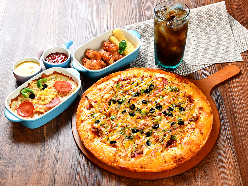 피자, 스파게티, 버팔로스틱, 치즈스틱